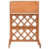 - This Garden Trellis Planter mixes useful features with style in a fun orange color that brightens up your outside area. Its rustic feel not only looks fantastic but also makes it easy to display climbing plants and flowers, turning it into a real eye-catcher on balconies or patios. Built Tough: Made from solid firwood, this planter is built to last and withstand outdoor conditions. The rugged material provides reliable support for plants, ensuring longevity.Plenty of Room: With generous dimensions of 17.7 inches by 17.7 inches by 29.1 inches, it offers exceptional capacity for various plants or storage for gardening tools. This feature makes it remarkably versatile for gardening enthusiasts.Rustic Look: Its charming trellis pattern not only supports climbing plants but also adds a decorative touch, enhancing the natural beauty of your garden.Sun-Resistant: The planter is treated to resist UV damage, ensuring that the vibrant orange color remains intact through seasons.Outdoor-Only Use: Specifically designed for outdoor applications, this planter is perfect for gardens or balconies, promoting healthy green growth while maintaining its structural integrity. Color: OrangePattern: Trellis (An open framework or lattice of interwoven or intersecting pieces)Shape: RectangularFinish: PaintedIndoor/Outdoor: Outdoor OnlyRoom: Garden and terraceCapacity: Fits various plants and flowersDimensions: 17.7 x 17.7 x 29.1 in (W x L x H)Weight: 4.52 lbsDrainage: YesDelivery Contains: Garden trellis planterAssembly Required: YesRecommended Number of People for Assembly: 1