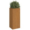 - This planter box is a fab mix of practicality and looks, making it a must-have for any outdoor area. Made from Corten steel, it has a rustic vibe that gets better with age, turning it into a focal point in gardens, balconies, or patios. Durable Material: Built from high-quality Corten steel, well-known for its strength and toughness, this planter box is designed to last outdoors. The special property of Corten steel means it develops a protective rusty coating, which prevents further corrosion.Weather Resistant: As the planter ages, it gains a rugged appearance that adds character and protects against harsh weather. It remains sturdy through rain, sun, and snow, making it spot-on for any climate.Versatile Design: The industrial design fits nicely in various outdoor spots, from modern gardens to rustic patios. Its look invites creativity, making it a perfect home for bright flowers or lush greenery.Easy Maintenance: Looking after the planter is a breeze ¨C just give it a quick wipe with a dry cloth to get rid of debris. It self-weathers, meaning no painting or special treatments required, allowing you to enjoy your garden hassle-free.Ample Space: At 12.6x11.4x29.5 in, this planter box provides plenty of room for planting arrangements, whether for herbs, veggies, or decorative flowers, ensuring your plants can flourish. Color: Brown Shape: RectangularMaterial: Metal SteelFinish: WeatheredIndoor/Outdoor: Outdoor OnlyRoom: Garden and terraceDimensions: 12.6 x 12.6 x 29.5 in (W x L x H)Weight: 7.43 lbsDrainage: NoDelivery Contains: Planter box and assembly manualAssembly Required: YesRecommended Number of People for Assembly: 1