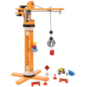 - The PlanToys Crane set comes with a crane, construction sign, street hazard signs, concrete mixer, and 2 figures of a foreman and worker.