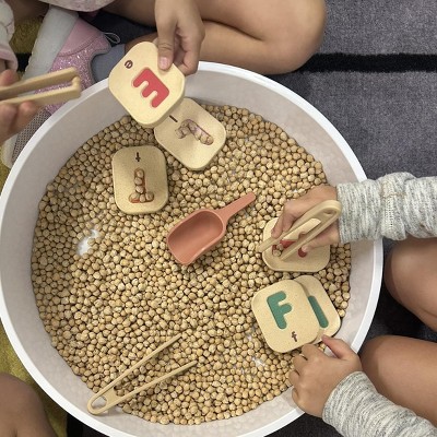 - Includes 26 tiles with uppercase letters and sign language on alternating sides