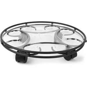 Tough and durable, this saucer makes moving or turning your heavy potted plant quick and easy! This saucer caddy is a deluxe steel caddy with a custom fitted designer saucer that snaps securely into the caddy with water wells to catch excess water. For added balance and strength there are four casters firmly welded to the caddy. The sturdy casters enable caddy to hold up to 200 pounds.
