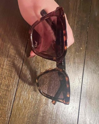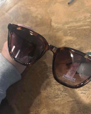 Cateye sunglasses from Wild Fable™ with brown tortoiseshell print. Made from plastic with 50% recycled plastic frames. Designed with cateye frames and brown lenses. Lenses feature maximum UV protection to help shield your eyes from the sun.