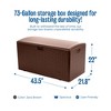 - STORAGE BOX: Spacious, 73-gallon deck box is ideal for storing outdoor equipment, cushions, tools, pool toys, and more