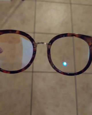 Brown glasses from Wild Fable™ feature tortoiseshell print. Blue-light filtering lenses help keep your eyes protected while working on screen. Round-shape glasses made with a mix of metal and plastic. UV protection feature makes the glasses great for sunny days.
