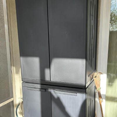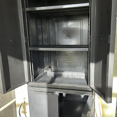 A: The cabinet is primarily made of polypropylene, with at least 20% recycled content.