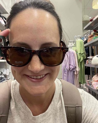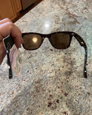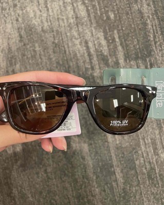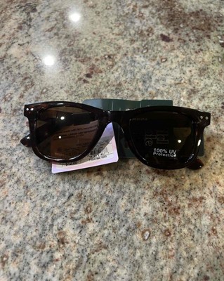 Plastic surf sunglasses from Wild Fable™ with a brown tortoiseshell print. Full-rim plastic frame in a surfer shade shape with brown lenses. Offer maximum UV protection to keep eyes shielded from harmful sun rays. Feature hinged temples for convenient folding and storage.