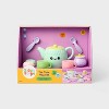 - Includes smiley-face teapot plus teacups, tray, plates and more