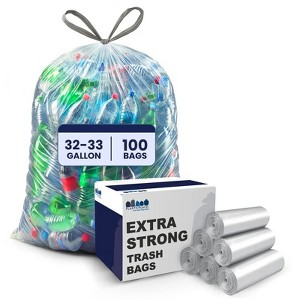 - CLEAR RESINS - Get 100% visibility with these 32-33 gallon clear trash bags. Use them to view the contents of your trash while disposing of your waste efficiently.