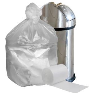 High-density resin garbage bags are perfect for any business looking to save money on both bags and shipping. This is an affordable, lightweight clear trash bag by Plasticplace, thats ideal for big offices or retail stores. The extra large 55 to 60 gallon capacity can hold a whole lot, and fits well in standard commercial cans. While they can be vulnerable to punctures from sharp objects, high density resin bags can hold a lot of weight: even at 12 microns thick, these bags will accept loads of up to 50 lbs. The clear resin also makes them a great choice when youre sorting items for donation and storage, since its always easy to see whats inside.