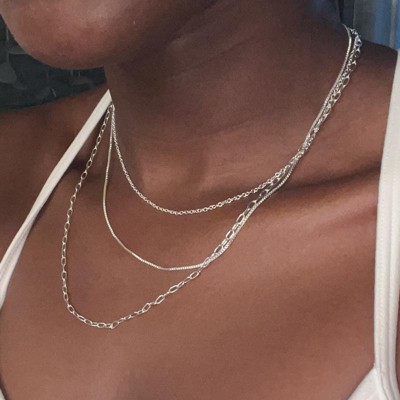 Plated Cable Box and Paperclip Chain Necklace Set 3pc - A New Day™ Silver: Brass, Nickel-Free, 16" Length