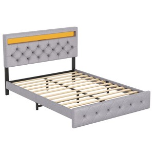 Specifications:Full Size: 81 x 58 x 40.6-44.5 inchesQueen Size: 84 x 64 x 40.6-44.5 inchesWeight Capacity: 550 lbsColor: Grey, BeigePower: AC Outlet / USB / Type-CMaterial: Metal, Wood, Linen Fabric