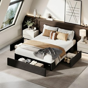 Platform Bed Frame with 3 Storage Drawers, Fabric Upholstered Bed Frame, Customizable Headboards, No Box Spring Needed
