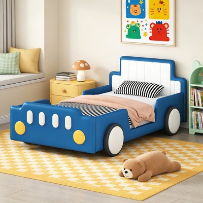 Platform Bed Modern Wood Grain Design with High Fence Rail for Kids Bedroom Twin Wood - 3irtyhousy