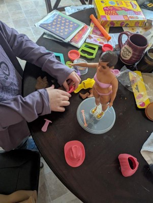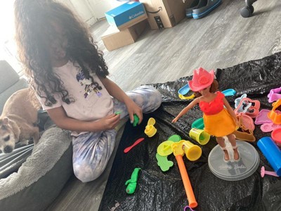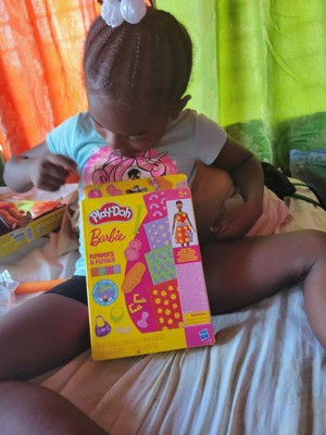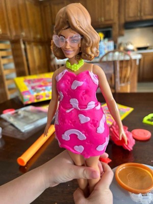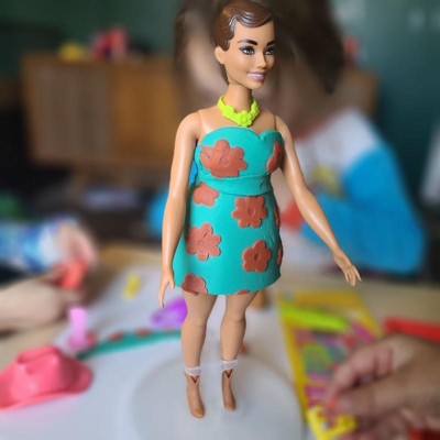 [This review was collected as part of a promotion.] Kids loved dressing up the Barbie. A little difficult to get on the doll but easy to make the clothes. Love that you can make whatever you want with the playdoh. My kid didn’t want to mess up the floral pattern because it was so pretty. Really fun toy for kids!