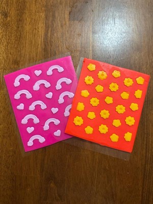 [This review was collected as part of a promotion.] Love the clear film to keep the sheets separated, and they are easy to cut or stamp shapes out. The colors are so vibrant, and my daughter loves the patterns!