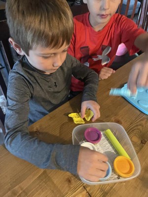[This review was collected as part of a promotion.] So this is a play dough kit that’s good for on the go. There are plenty of colors in the small canisters and plenty to do without taking up a ton of space /cleanup.the container is about the size of a sandwich box, and my child is happy with it.