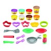 Includes flipping skillet, 4 pancake cutters, egg stamper, syrup extruder, 2 plates, 2 forks, spatula, knife, roller, and 8 cans of Play-Doh Brand Modeling Compound (net weight 9 oz/255 g).