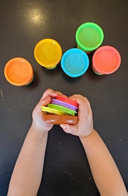 - 6 PLAY-DOH COLORS: 2 ounce (56 gram) cans of modeling compound include red, orange, yellow, blue, brown, and green (contains wheat)