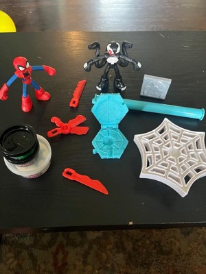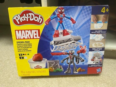 - LAUNCH WEBS: Use the Spider-Man web slinger tool to stamp out a big Play-Doh web, then press the button to launch the web and capture Venom!