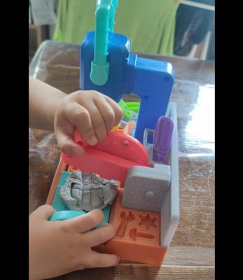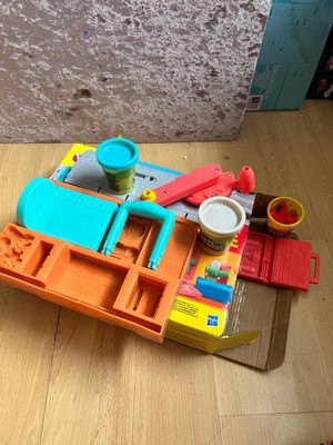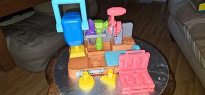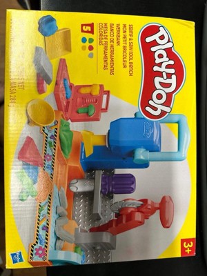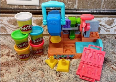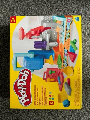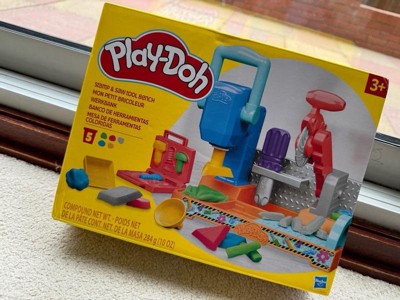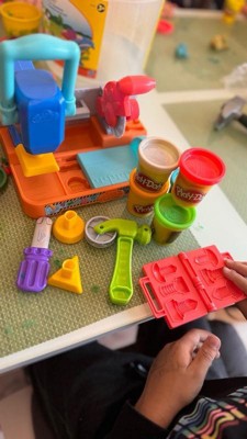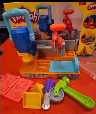 Includes tool bench playset, 3 stamper attachments, toolbox book-mold, toy screwdriver, rolling hammer stamper, and 5 cans of Play-Doh Brand Modeling Compound (2 ounces/56 grams per can).