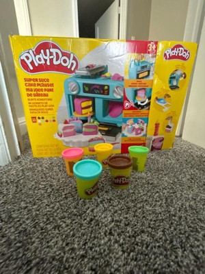 Make any day a colorful celebration with the Play-Doh Super Slice Cake Playset! It’s a great kitchen set for kids to create Play-Doh cakes by the slice for lots of creative possibilities. To start, shape some make believe cake mix balls and place them in the toy oven. Press the handle and open the door to hear a fun bell sound and see a slice come spinning out! Stack multiple colors for imaginary layer cakes or - if you dare mix the colors - create a marbled effect. The built-in frosting roller and cutters make it easy and fun to add smooth pretend frosting right onto the slices. Add colorful Play-Doh frosting dollops and pretend play food candies with the decorating tool and molds. Cooking toys like this kids playset can bring lots of tactile play for party gifts and fun creative activities for kids 3 years and up. PLAY-DOH and HASBRO and all related trademarks and logos are trademarks of Hasbro, Inc.