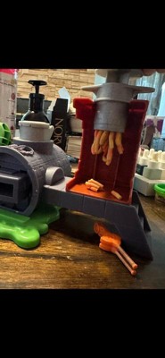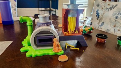 Come down to the sewer for the wackiest and wildest Play-Doh pizza party with the Teenage Mutant Ninja Turtles Slice and Blast Pizza Playset! Michelangelo needs help training for his next adventure, so why not shoot play food pizzas at training dummies? Simply load the Play-Doh pizza compound into the sewer grate, pull the handle to slice the compound inside the TMNT playset, and press the button in the back to launch. A variety of Play-Doh molds help kids create Doh-ified gear for the Michelangelo action figure to wear and hold. This Play-Doh kit is a perfect gift for kid fans of Teenage Mutant Ninja Turtles toys and arts and crafts activity toys for kids 4 years and up.