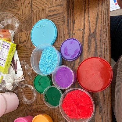 Had to return it. It was pretty wet and not a great feel to any of them. Even after playing for it for a while it never got less wet. We’ve bought so much slime and slime dough over the years and none of them have been this wet. Very strong smelling but not unpleasant. The red one left residue all over our hands, almost like tiny tiny bits of whatever is in a diaper.