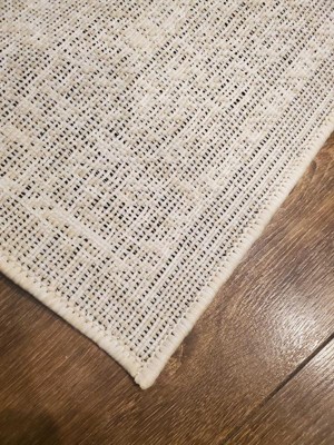 [This review was collected as part of a promotion.] I'm all for machine washable rugs. Makes life easier with pets and kids. I think this rug is a little whiter in person, and I like it more that way. I really like the design and the size fits perfect in my kitchen. There isn't cushion to this rug so I'll have to buy one of those stress mats for washing dishes. It's not a nonslip rug but I think the 8 foot size helps it stay more secure. The material sisal is often used for cat scratchers, and I think my cats know the material because they scratch it, stretch on it, roll around on in. It's like one big cat toy for them. I received an incentive to write this review.