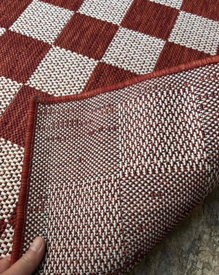 [This review was collected as part of a promotion.] This rug is great! I love that it can be used indoors or outdoors. The fact that it can be used outdoors means it will be very durable if it gets spilled on or anything. I love the colors of it, just as described. It actually makes a nice welcome mat too. A few bumps in it when I unrolled it but those flattened out on their own quickly. Love this rug and believe it will last a while! I received an incentive to write this review.