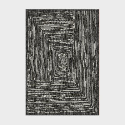Playa Rug 5'x8' Machine Washable Eliza Rectangle Woven Indoor Outdoor Area Rug Jute and Black: UV & Stain-Resistant, Low Pile