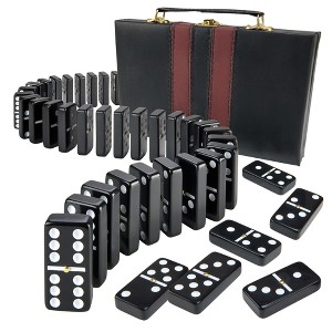 Playbees Jumbo Double Six Dominoes Set – 28 Black Classic Tiles in Faux Leather Case – Educational Toy, Game Night, Travel-Friendly