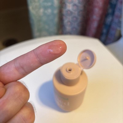 [This review was collected as part of a promotion.] This small bottle will last a long time! The texture is smooth and not sticky. It has no odor and it spreads very easily. It is also very allergen friendly and good for anyone with sensitive skin. It washes off easily and doesn’t leave any lingering residue either after washing off with soap and water. Just a small dime size amount is all you need and the bottle squirts out easily. I received an incentive to write this review.