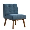 No matter how you choose to use it, the armless Playmate Chair from Buylateral is the perfect accent to any room. This versatile button-tufted chair is a comfortable seating option next to your fireplace, pulled up to your dining room table, in your bedroom or as a guest chair in your office. This chair has a bit of retro charm with a rubberwood base topped with fabric upholstery for a sleek look.