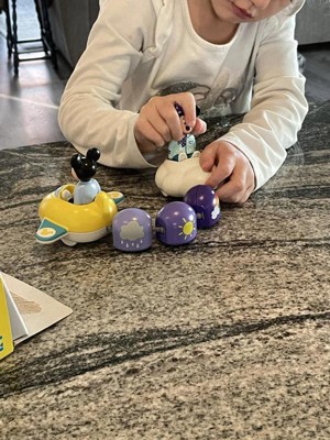 Mickey’s & Minnie's Cloud Ride is a plug-in and combination game, that promotes fine motor and cognitive skills at the same time. The individual snap-lock elements and vehicles can be combined as the child wishes, to create a fun plane-cloud-train. The printed pods also encourage children to learn to count from 1 to 3. Or, with the help of their parents, they can also get to know how a rainbow develops, for example.
