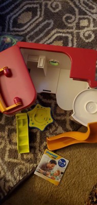 [This review was collected as part of a promotion.] My 2 year old and four year old have both enjoyed playing with this. It's got some nice little features and closes up for travel. My kids like having the little people go down the slide and swing on the swing. It arrived with parts loose in the box, and the white plastic got marked up from the red parts. Also my kids have a hard time getting the people to sit in the spinning toy, which is frustrating for them. Overall a good toy though!