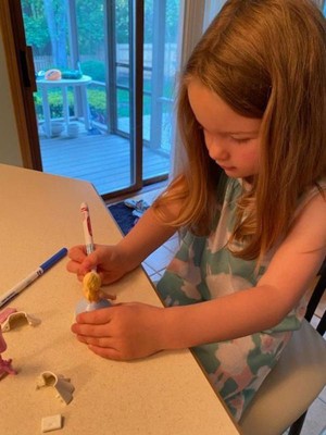 [This review was collected as part of a promotion.] I let my daughter do this and helped her set it up. She enjoyed it and had a good time with it as well. It was very easy to do , the instructions made it easy to understand which isnt always the case with items i have had to put together. I thought this was so adorable, the little doll with the dress that you color and design. My daughter decided to do the design exactly like the photo with dots. I wish I took a photo but I was unable to find out where she put the kit when she was done. It is somewhere around here but she immediately said it was hers once she saw it and I was thinking of her when I saw these being offered. I recommend these for anyone who likes arts and crafts and/or has kids who like arts and crafts. Thank you for the opportunity!