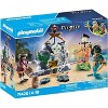 PLAYMOBIL 71420 Arr! Help the pirate find the hidden treasure with the Treasure Hunt. With the help of the treasure map, the pirate is lead to mysterious Crystal Skull Island. In the darkness of the underwater cave, the markings on the rocks guide the pirate to the hiding place of the Crystal Skull artifact. Push aside the spider web to reveal the hidden treasure! Combine with other PLAYMOBIL Pirate sets (#71418-71421) for even more fun. Set includes pirate and sea monster figure, rock hideout, cannon, treasure chest with booty and lots of other accessories.