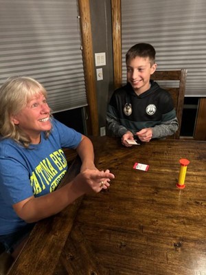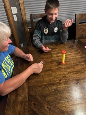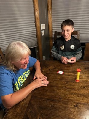 We received this game for testing and an honest review. My 10 yr old and i thoroughly enjoyed this game. Simple enough that we can easily play, but with the time crunch thrown in, makes it competitive. With the time limit it makes the playing field a little more even with the age difference. I froze a few times trying to think fast. We've played this a few times now and with all the choices of questions we haven't repeated anything yet. A great game to take along when traveling and going to be added to our stack to take camping with us. Looks like it will also be a lot of fun when we add more players when we are out camping.