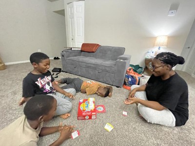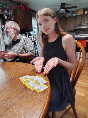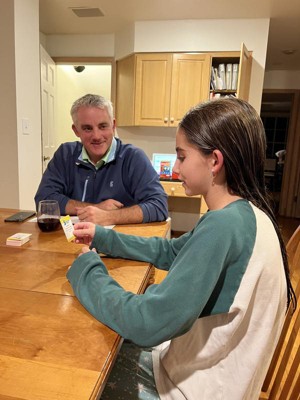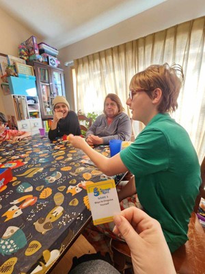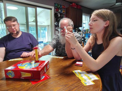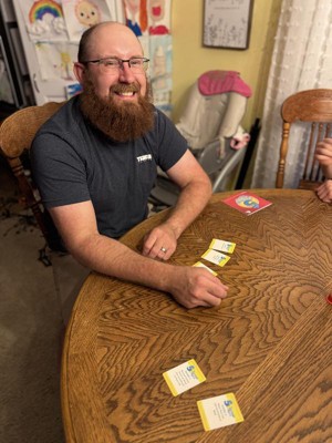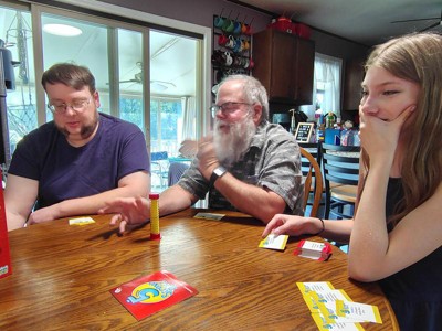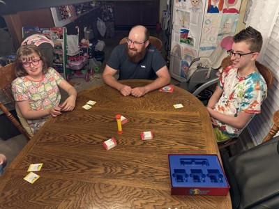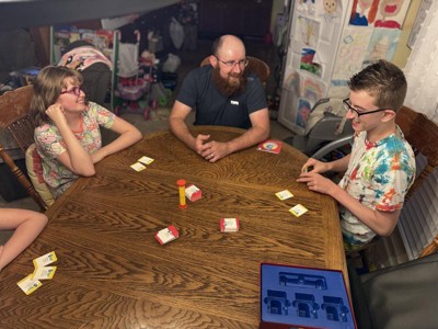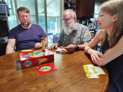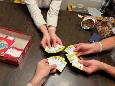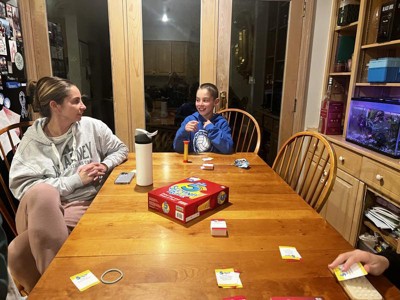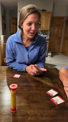 We received this game to sample in exchange for our honest review. There are only two of us in the household- an adult and a 15 year old. This game was great for just two people and we plan to bring it with us to a game night we have monthly with a bunch of friends. It is a super fun game and easy to learn quick. The questions on the card are good for a wide age range. I even think you could easily have this in the car for road trips. Great game for families or group of friends.