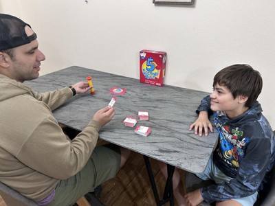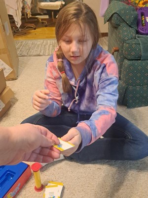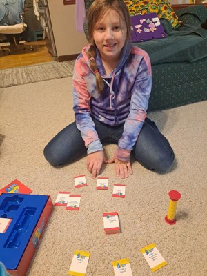 This game is so much fun! I love that it's easy to follow, and easy to play. My eight year old especially liked that the timer has little balls that roll down a ramp rather than the traditional sand timer. She also liked that it made a "silly" noise when you flip the timer over. The cards are easy for children to understand and it's a great thinking game for both children and adults. I really like that you can easily play with 2 people or a lot more. There are plenty of cards so the game doesn't get repetitive at all. It keeps us on our toes, we laugh, and we have a lot of fun! I would definitely recommend this game to others.