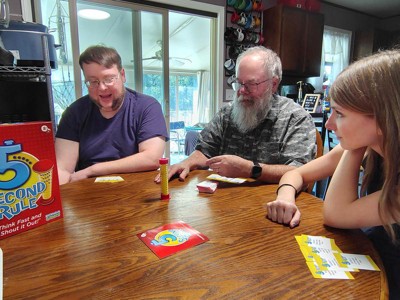 Oh my, we had a time. It was so fun seeing everyone guessing in under 5 seconds. When you think you know the answers, they do not come right away. My boys enjoyed trying to figure out every little card. This game was very easy to understand, easy to set up, and even easier to clean up. It has so many cards that everyone can literally guess a number of times and win a card or 2. When we thought we were smart, it actually challenged us to even greater levels of thinking. 5 seconds didn’t seem enough. We absolutely also loved taking turned flipping the bead timer.