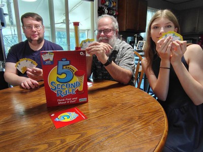 I received this product in exchange for an honest review. We played this game with 2 adults and our 11 year old granddaughter. The 5 second timer made it a fun challenge to try to quickly name three items. I feel like the fast pace made it equally easy for the adults and child. It moved quickly enough that no one got bored. I can see adding this to the games we play on road trips. We'll definitely play this again.