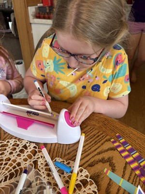 We received this bracelet maker as part of a promotion. My 9 year old daughter put it together by herself and was even able to make the bracelets by herself! She was so excited!! The only downfall, which isn't terrible, is that the ink from the markers wipes off if you touch the bracelet without letting it dry or it gets wet.
