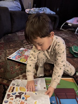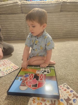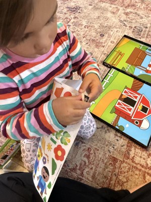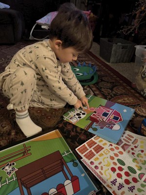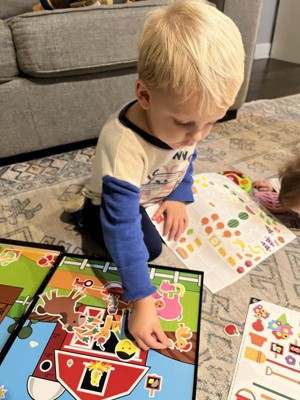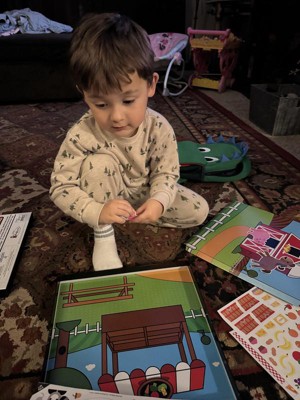 Really cute! Simple enough for my 2 year old but engaging enough for my 4 year old. Great fine motor practice to peel off the stickers