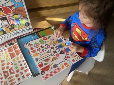 My daughter and I love this! She loves playing with stickers, so she like that she can stick and then move the stickers around. It is fun and very creative. She can use it over and over. It is great for taking on car trips or foot playing at home. This would make a great gift!