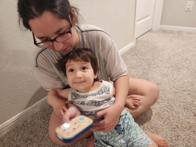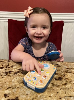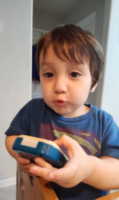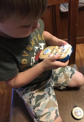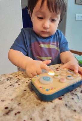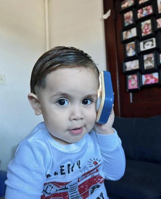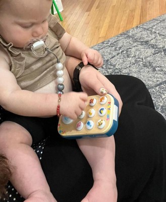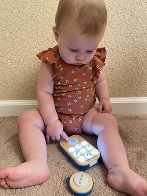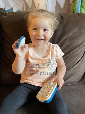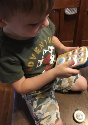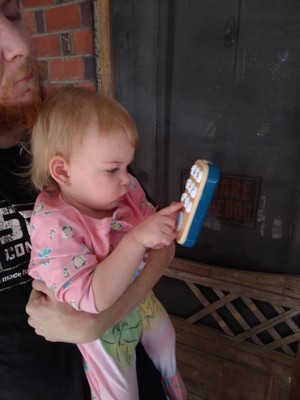 We received this toy phone and it is really cute. My toddler and older kid love the recording feature with separate remote and couldn’t get enough. Giggles all around making messages for each other for nearly 20 minutes. The buttons are big, light up, and play sounds. I love the wooden case and the ability to turn off the remote ringer to save battery. It would make a great gift for a baby or toddler! Very unique features, different from other phone toys out there. Highly recommended!