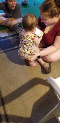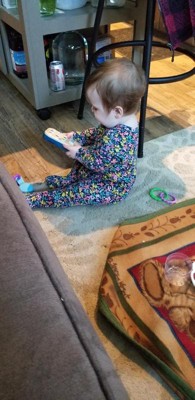 I got this for my Granddaughter who is 10 Months old. She loved it! She played with it for hours. She loved the sounds and voices. I love that the parents/grandparents could leave personalized messages too. :)