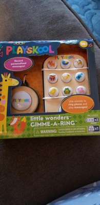 Made with natural wood~ Playskool little wanders gimme-a-ring is a perfect way to send messages using record & ring with remote to ring the phone & surprise your little one. Also has a variety of noises to make playing fun while learning. So very cute!