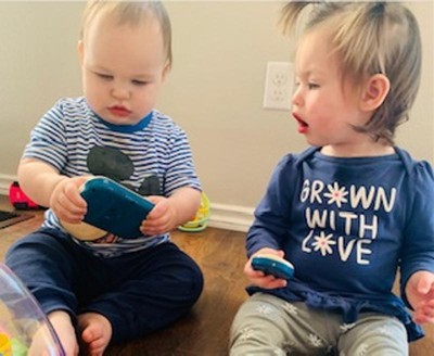 I do not want my twins to be exposed to technology too early. I and they love the idea of a play phone. The Gimme-Me-a-Ring phone is perfect for fostering imaginative and pretend play. Highly recommended for hands-on, creative play.