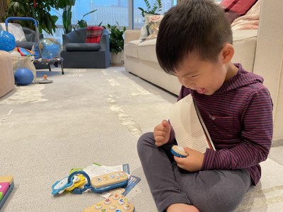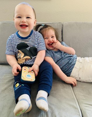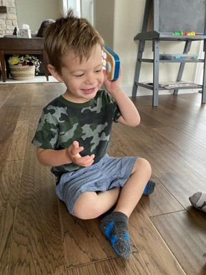 If your child loves playing with your phone, give them this age-appropriate toy instead! The many features and sound effects are great for dramatic play and it's the perfect size for small hands to manipulate. Our kids especially LOVED hearing the pre-recorded sounds of familiar voices.